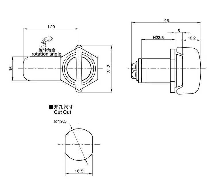 A cam lock operates by turning the lock cylinder with a key, causing the cam to rotate. The changes in the cam’s shape and position allow the lock to open and close. This type of lock is commonly used in cabinet doors, drawers, toolboxes, distribution cabinets, and other equipment.